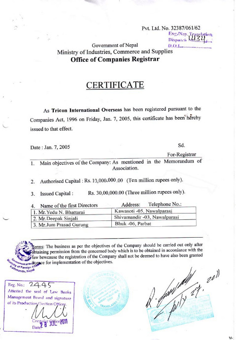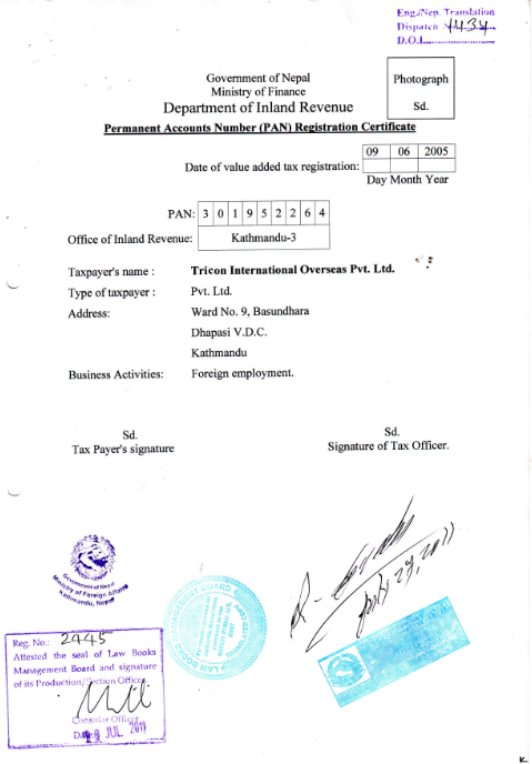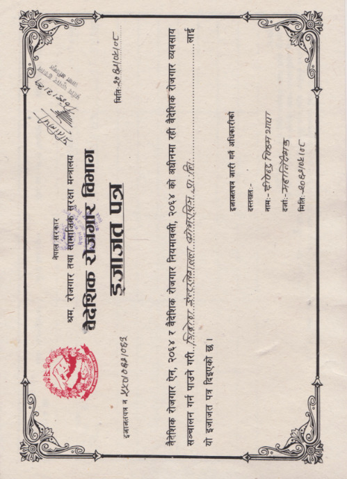 Ejajat patra form Department of Foreign Employment (FRONT)